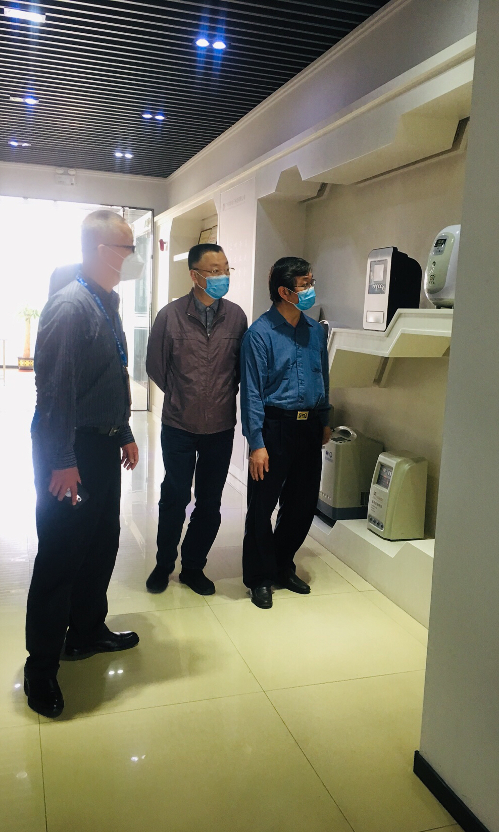 在我司总经理朱总等人员陪同下,市局、区局领导参观了公司产品展示区,详细询问了展示产品类别与功能。朱总向市局、区局领导介绍了公司办公区情况及部分部门工作职能。